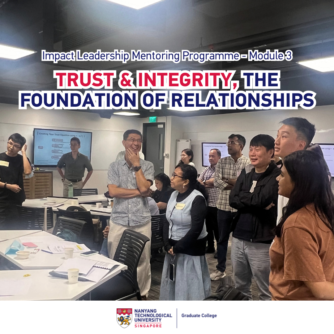 The Impact Leadership Mentoring Programme, organised by NTU Graduate College in collaboration with Compass@Campus, is a four-module programme that aims to help participants discover their purpose, redefine success, develop greater interpersonal effectiveness, understand the importance of trust and integrity in relationships, and learn about servant leadership. The programme was conducted over four Saturdays between 18 February and 11 March 2023 at The Arc, LHN-TR+15, and required a commitment from students to attend all four modules in person.