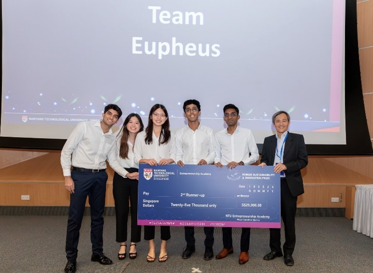 About the competition: The Kumar Sustainability & Innovation Prize was launched in January 2023 to promote entrepreneurship and innovation within the NTU community. It aims to develop the most promising and impactful solutions and innovation to address sustainability issues benefitting people and society, in Singapore and beyond. Teams were judged on the unique value proposition of their proposed solution, market potential, business model, and execution.