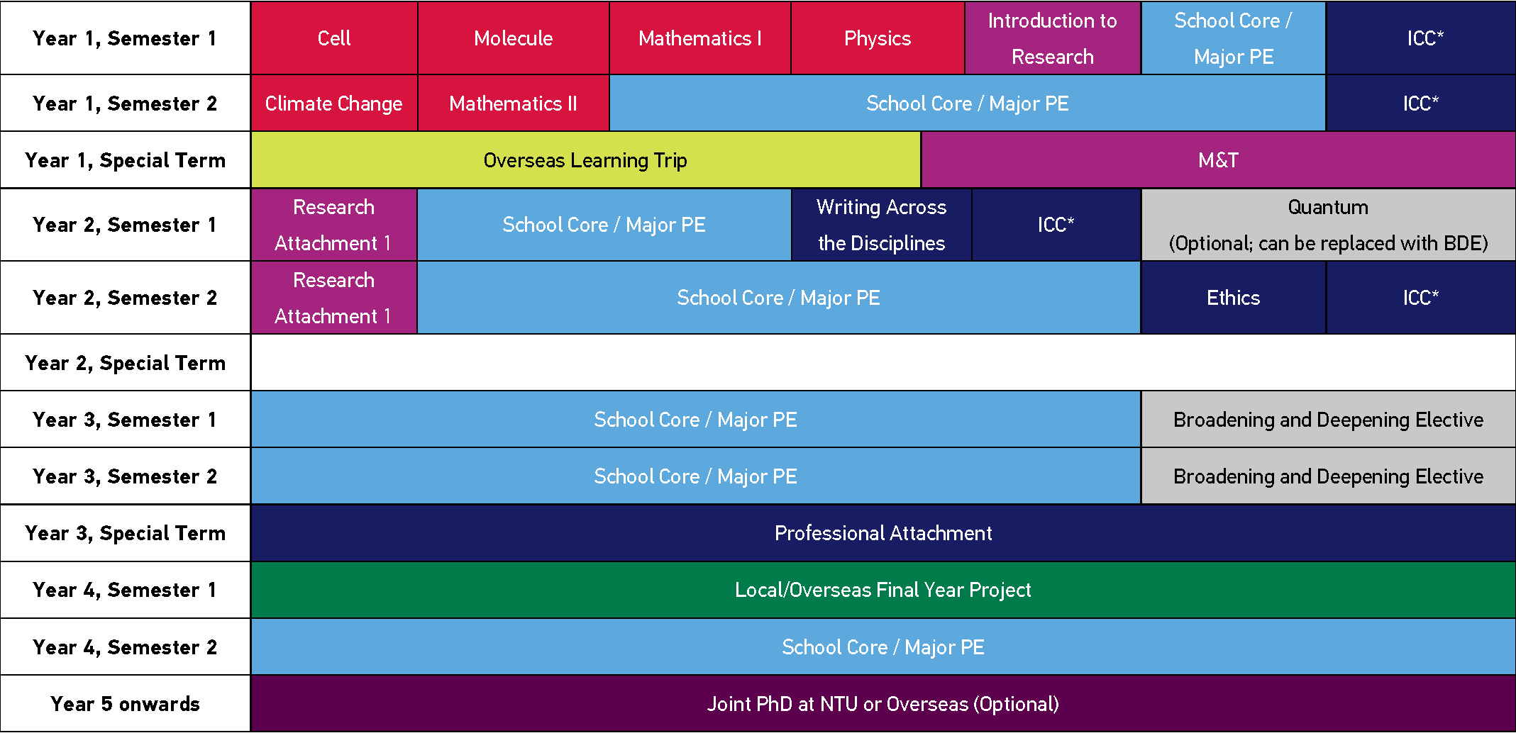 (Certain ICC courses are replaced by CN Yang-specific equivalents; see below.) - Core modules, prescribed electives, and other requirements of the degree programme.