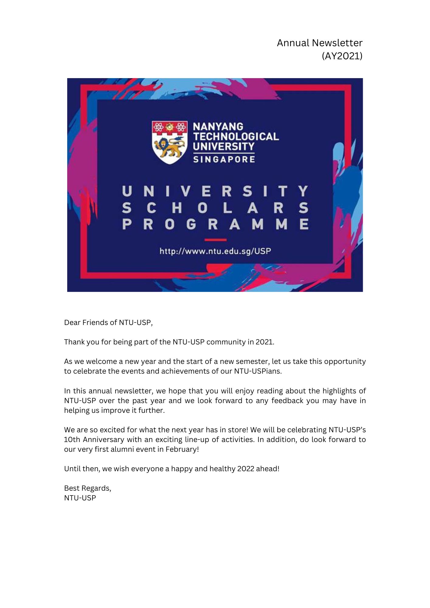 • NTU-University Scholars Programme