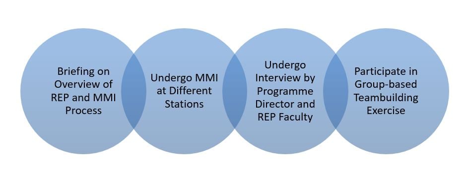 Applicants will be shortlisted to go through interviews in the format of Multiple Mini Interviews (MMI). Since 2016, the MMI approach has been adopted as the format to ensure fairness among applicants.In addition to the MMI, applicants will be individually interviewed by the Programme Director / REP faculty and participate in a group teambuilding exercise.
