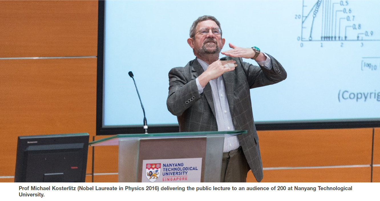 We were honoured to have two Nobel Laureates in Physics 2016, Professors John Michael Kosterlitz and Duncan Haldane who attended this workshop. They were appointed as Lee Kong Chian Distinguished Professors in relation to the event. This workshop brought together researchers working on various aspects of topological phase transitions. In the past three decades, the discovery of topological phases has not only engendered great interest among researchers in condensed matter physics but it has also attracted the interest of researchers working on quantum information, quantum materials and simulations, high energy physics and string theory.