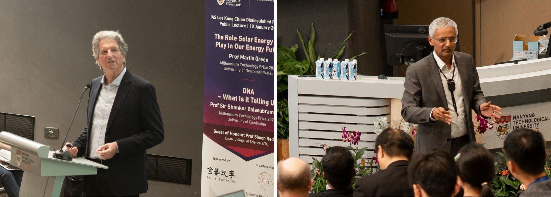 Our eminent speakers, Prof Martin Green and Prof Sir Shankar Balasubramanian, were appointed as Lee Kong Chian Distinguished Professors in relation to the public lecture on 10 January 2024. Organised as a partner event of the National Research Foundation's Global Young Scientists Summit 2024, the event was sponsored by Lee Foundation.