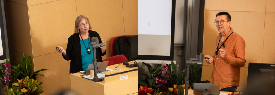 [From left] Engaging lecture by Prof Maria Jasin on DNA editing, and intriguing lecture by Prof Virginijus Šikšnys on the ongoing evolutionary battle between bacteria and bacteriophages.