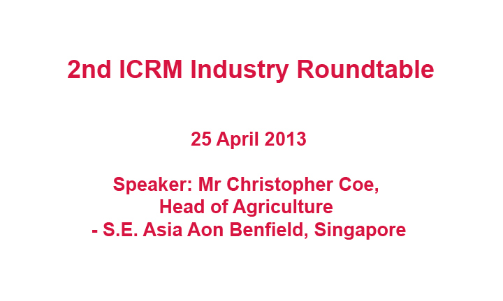 Speaker: Mr Christopher Coe, Head of Agriculture - S.E. Asia Aon Benfield, Singapore