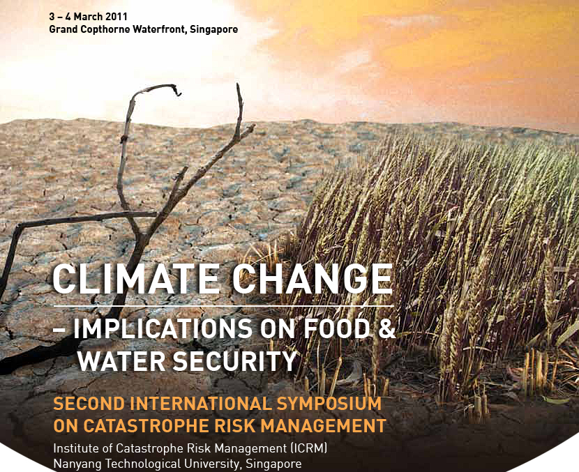 The Institute of Catastrophe Risk Management or ICRM was launched by Nanyang Technological University in January 2010 with a vision to become Asia’s leading research institute in catastrophe risk management. In conjunction with the launch, an Inaugural International Symposium on Catastrophe Risk Management was organized with the core theme of Public-Private Partnerships in managing catastrophe risk. This second symposium continues with the same key theme of public-private partnerships, but with focus on managing potential risks of climate change on food and water security.