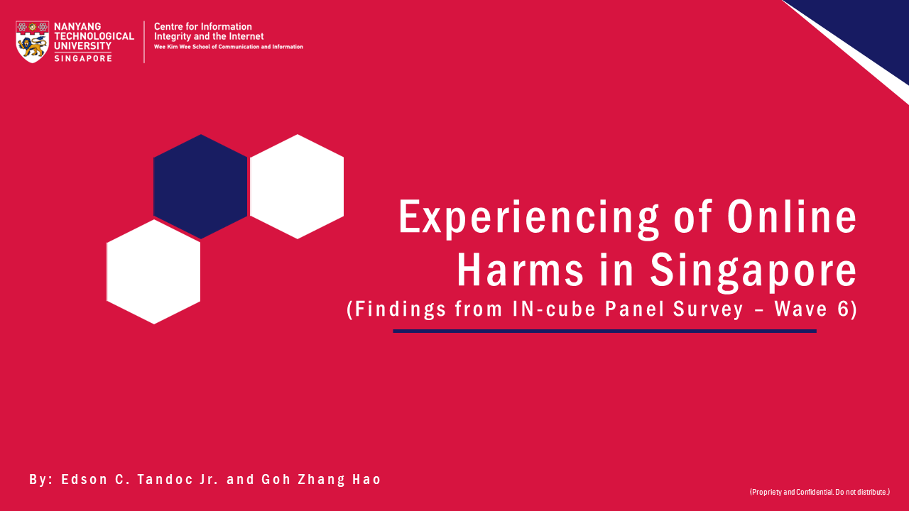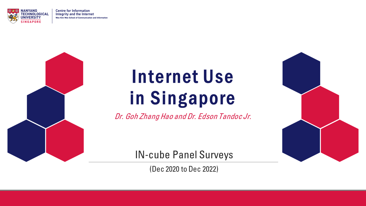 Factbooks & Working Papers IN-cube_OnlineHarms_Wave6 (pdf) 402 KB Internet Use in Singapore (IN-cube Panel Surveys_Dec'20 to Dec'22) (pdf) 517 KB IN-Review 2022 (pdf) 886 KB D3 with Deliberate Online Falsehoods in SG (pdf) 1830 KB IN-cube Working Paper No.1 (pdf) 895 KB New Normal Factbook (pdf) 741 KB Information, Emotions, and Perceptions about COVID-19 (pdf) 925 KB