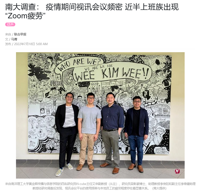 [Lianhe Zaobao] 南大调查: 疫情期间视讯会议频密 近半上班族出现“Zoom疲劳” https://www.zaobao.com.sg/news/singapore/story20220718-1293840