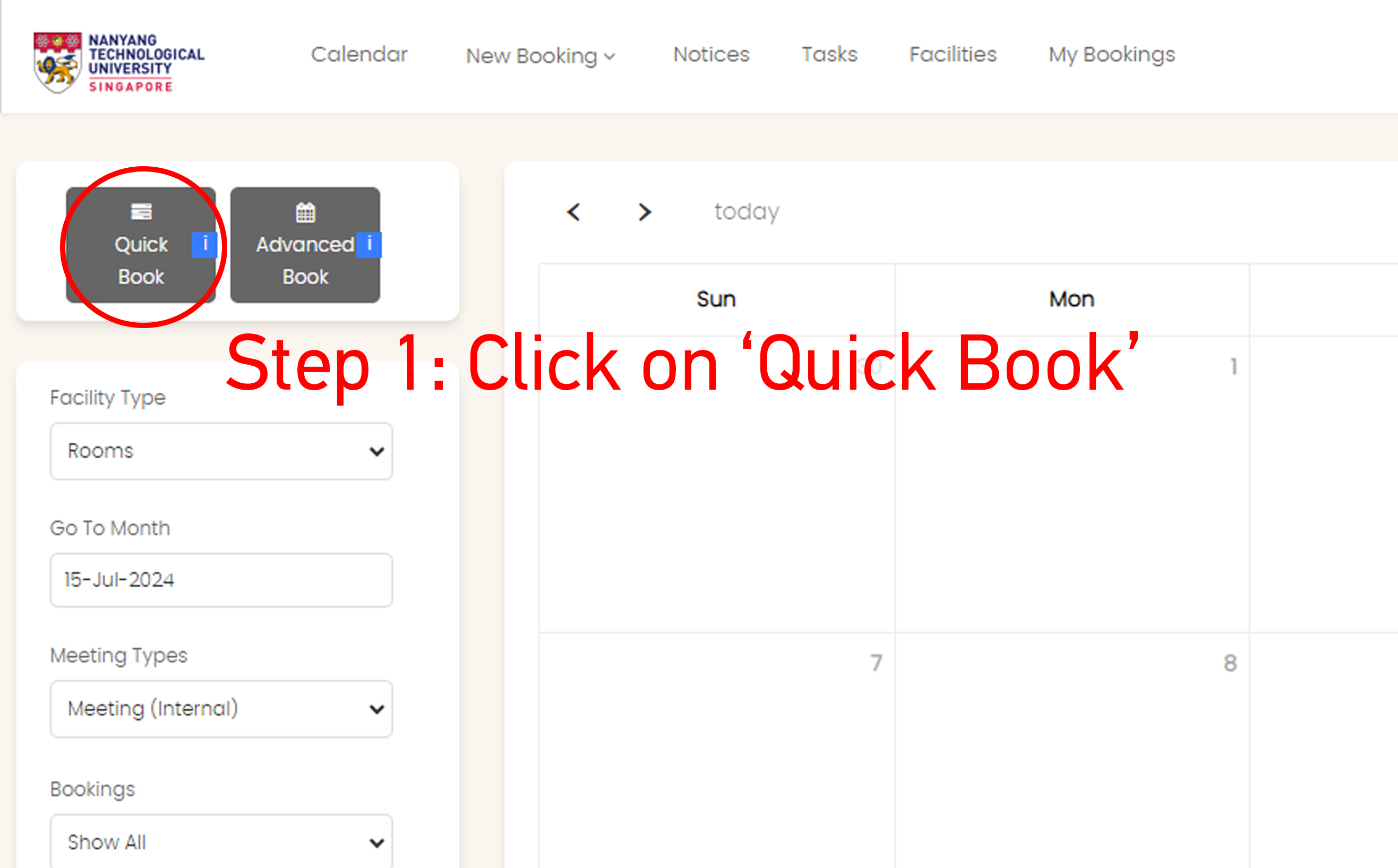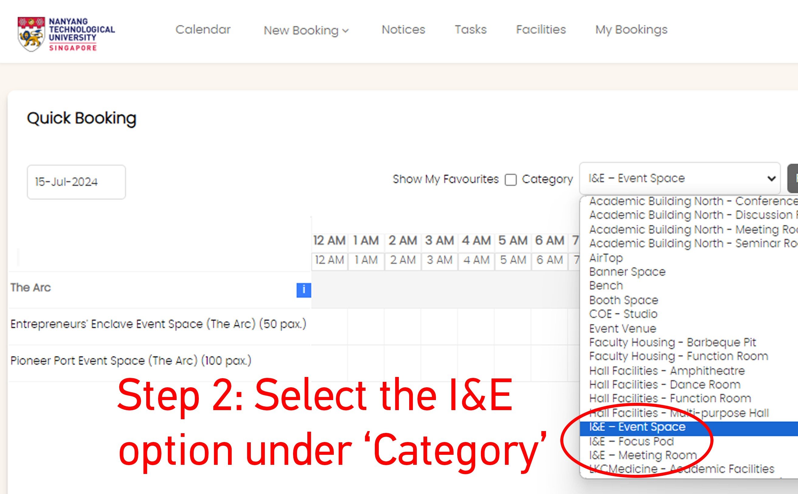 To book the listed facilities, please visit the NTU Facilities Booking System and follow our step-by-step guide below: