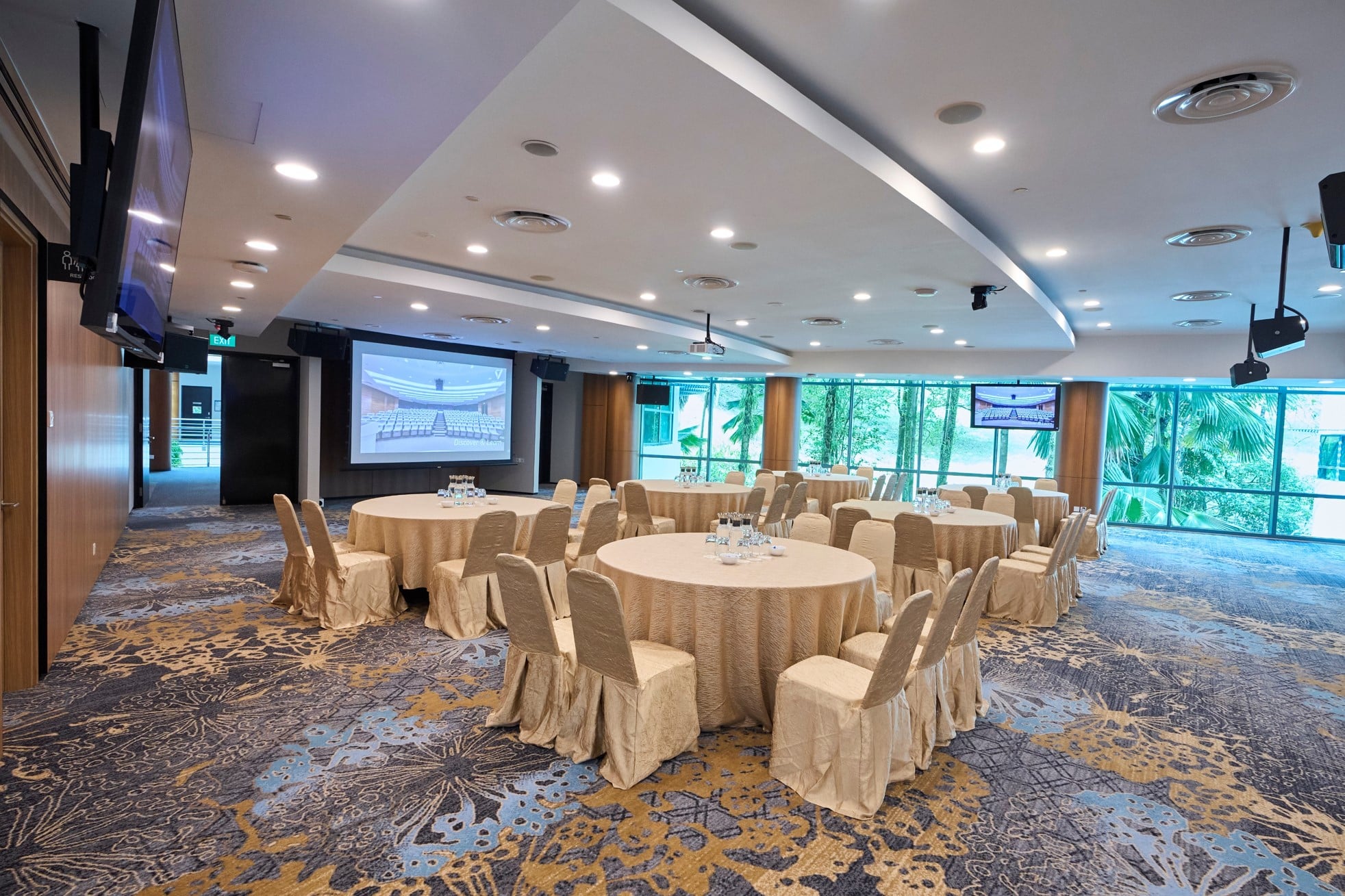 | Function Halls The Function Halls offer versatile spaces suitable for large-scale events. Both halls feature an open-plan layout that can be configured to suit a variety of events. Function Hall 1 accommodates up to 150 guests while Function Hall 2 accommodates up to 80 guests, suitable for conferences, presentations, and social events. | ![]() |