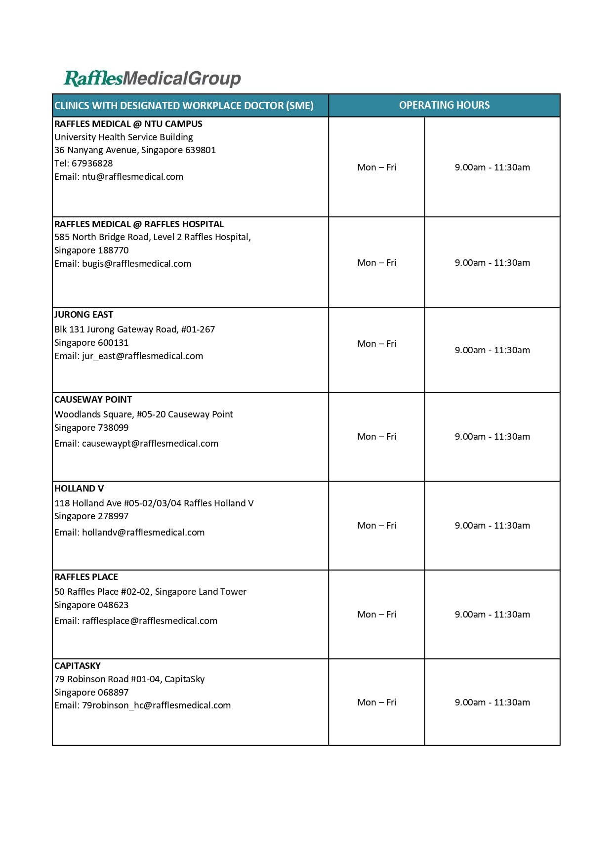 For general enquiries from NTU staff and students, please contact Raffles Medical Group at [email protected]