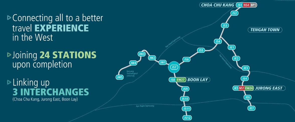Singapore’s Mass Rapid Transit (MRT) network is coming through NTU’s main campus. Linked to the Jurong Region Line, three MRT stations will serve the NTU Smart Campus: JW3 (Nanyang Gateway), JW4 (Nanyang Crescent) and JW5 (Peng Kang Hill)*. These stations will contribute to NTU’s campus vibrancy and provide much easier connections to the rest of the island. The Jurong Region Line is Singapore’s seventh MRT line, serving the western part of Singapore. Connected to key activity nodes in Jurong, NTU will be at the epicentre of knowledge creation, innovation and industry engagement in the Jurong Innovation District and the new Tuas Mega Port, which is in close proximity.