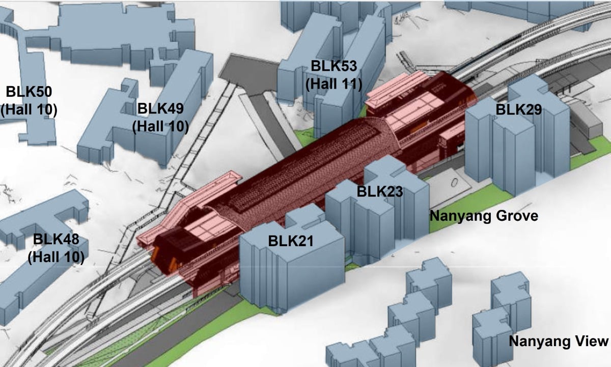 JW3 Station is situated above Nanyang Avenue, between Hall 11 and Nanyang Grove. To better serve residents in the area, the station will have three entrances along Nanyang Avenue. An entrance will be located outside Hall 10 and the other two entrances will be located in front of Nanyang Grove apartments and Binjai Hall respectively.