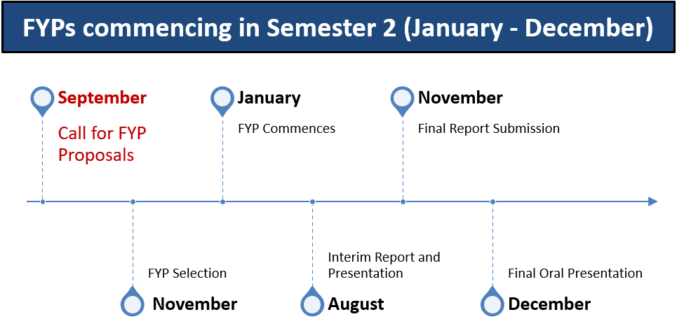 There are two FYP cycles each calendar year, allowing students to commence their Final Year Project in either Semester 1 or Semester 2.