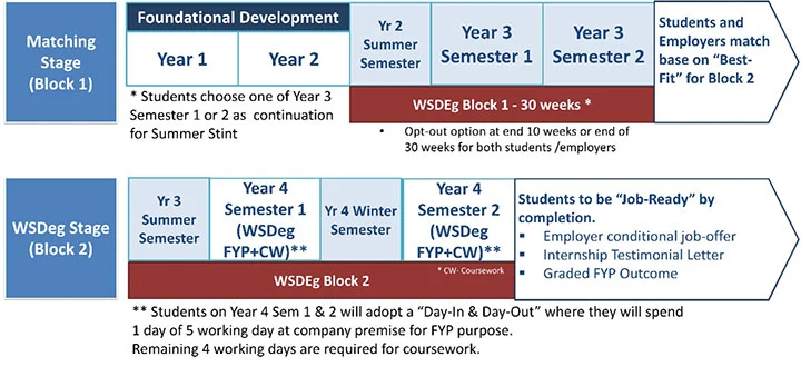 Work-Study Programmes in NTU aim to enhance students' employability and readiness for full-time employment by providing opportunities for students to alternate between terms of studies and internship work to experience multiple on-the-job training throughout their course of study.