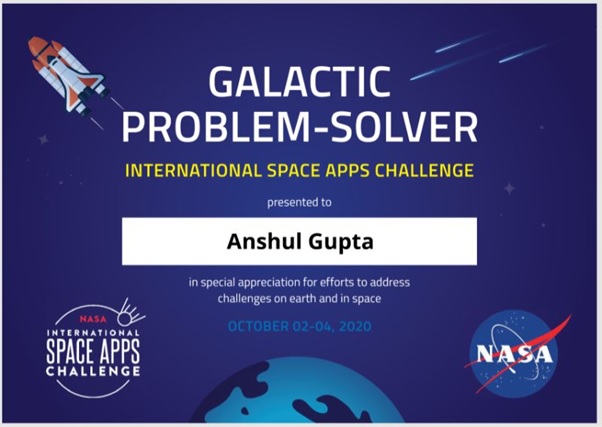 It is a two-day long international hackathon where students globally apply critical thinking along with technical skills to innovate for a better world, using NASA's data. There were different categories in the challenge, each having several proposed problem statements under it. The team opted for the one close to their interests, "Sustaining our planet for future generations". After 2 days of incessant efforts, they devised a solution leveraging the power of social media to spread awareness among the netizens about the grave environmental issues. They used the available NASA data to achieve credibility as well as accuracy in their solution during the analysis.