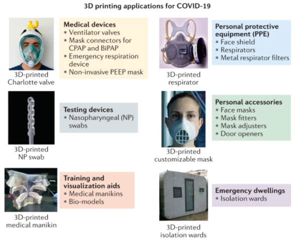 3D printing enables on-demand solutions for a wide spectrum of needs ranging from personal protection equipment to medical devices and isolation wards. This versatile technology is suited to address supply–demand imbalances caused by socio-economic trends and disruptions in supply chains.