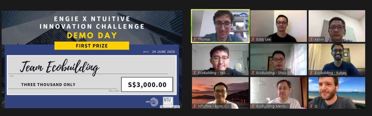 Open to all university students in Singapore, the inaugural ENGIE x NTU Innovation Challenge is jointly organised by ENGIE Factory Asia-Pacific, the innovation arm of ENGIE Asia Pacific, and NTUitive, the innovation and enterprise company of NTU Singapore. The final judging of the top three teams was held on 24 June 2020. Team EcoBuilding emerged as the winning team.