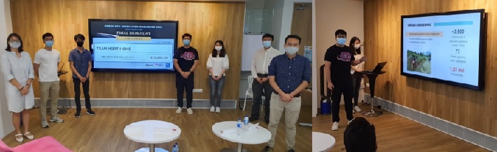 Team EcoBuilding developed a system of multi-parameter sensing for predictive controls of air-conditioning. The system uses multiple parameters to make predictive decision on air-conditioning control as opposed to only temperature in conventional systems. The team was mentored by industry executives in sustainability, energy and smart city technology, and received S$10,000 grant for prototyping and test bedding. Over an 8-month period, the team was given special access to the facilities of the JurongHealth Campus (Ng Teng Fong General Hospital and Jurong Community Hospital) to test bed their prototype as solution to energy-efficiency and smart building. They achieved more than 20% energy savings and improved comfort through machine learning of room occupancy and air quality metrics.