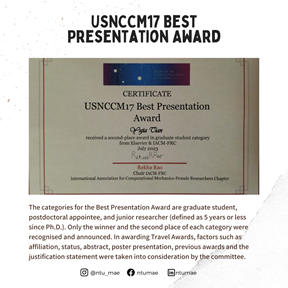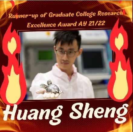 We are proud to present that one of our NTU MAE PhD student Huang Sheng has been awarded as the Runner-up for the Graduate College Research Excellence Award in academic year 2021 - 2022.