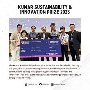 The Kumar ♻️ Sustainability & 💡 Innovation Prize, that was launched in January this year, aims to promote entrepreneurship and innovation within the NTU community to develop most promising and impactful solutions and innovation to address sustainability issues benefitting people and society, in Singapore and beyond.