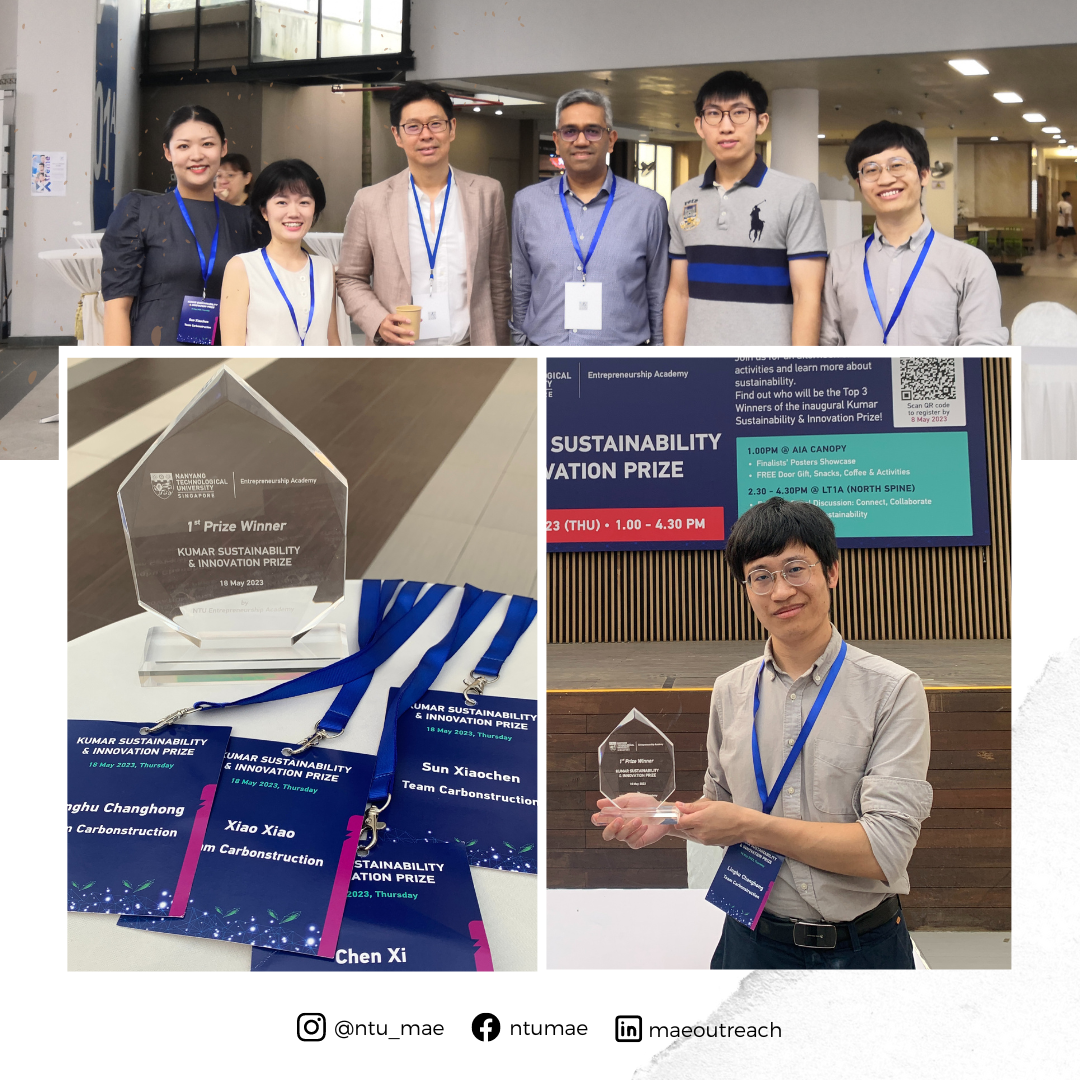 Congratulation to Team Carbonstruction, led by Changhong LINGHU from School of MAE for winning the sole first prize in the Kumar Sustainability & Innovation Prize 2023.