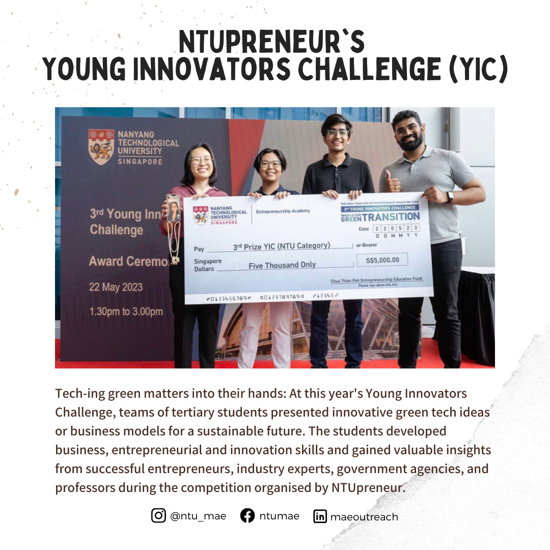 MAE team MiE'61 Reps wins 3rd Prize in the NTUpreneur's Young Innovators Challenge (YIC) 2023