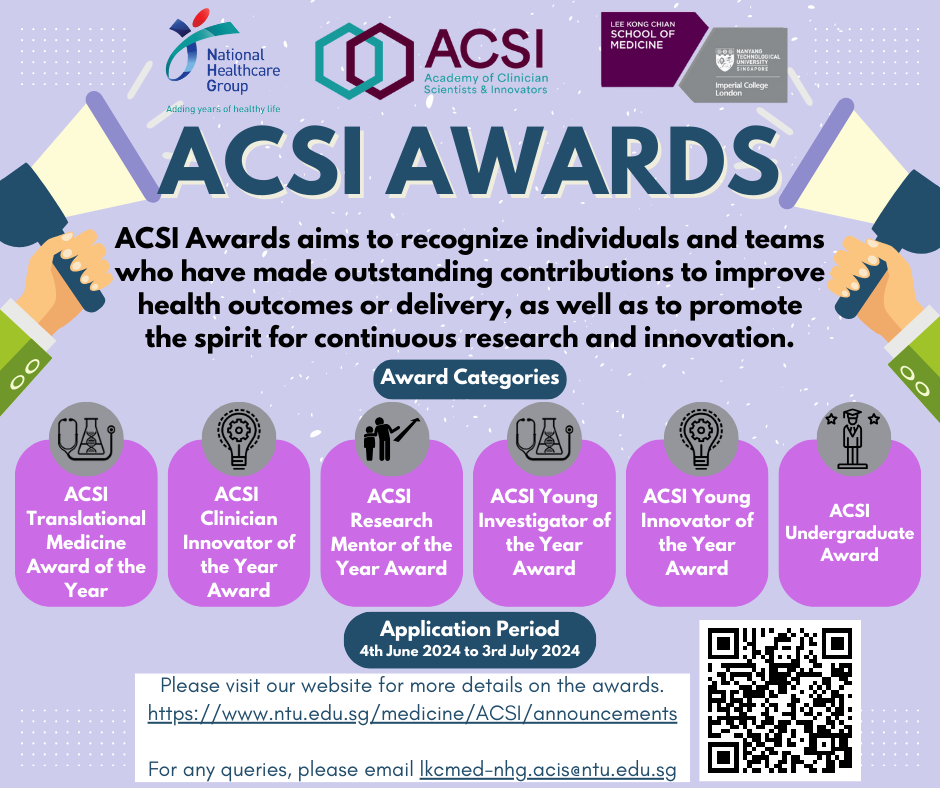 The Academy of Clinician Scientists & Innovators (ACSI) hosted its first Award Ceremony on 23 September 2024 to recognise their contributions, achievements and excellence in mentorship, translational research and innovation.