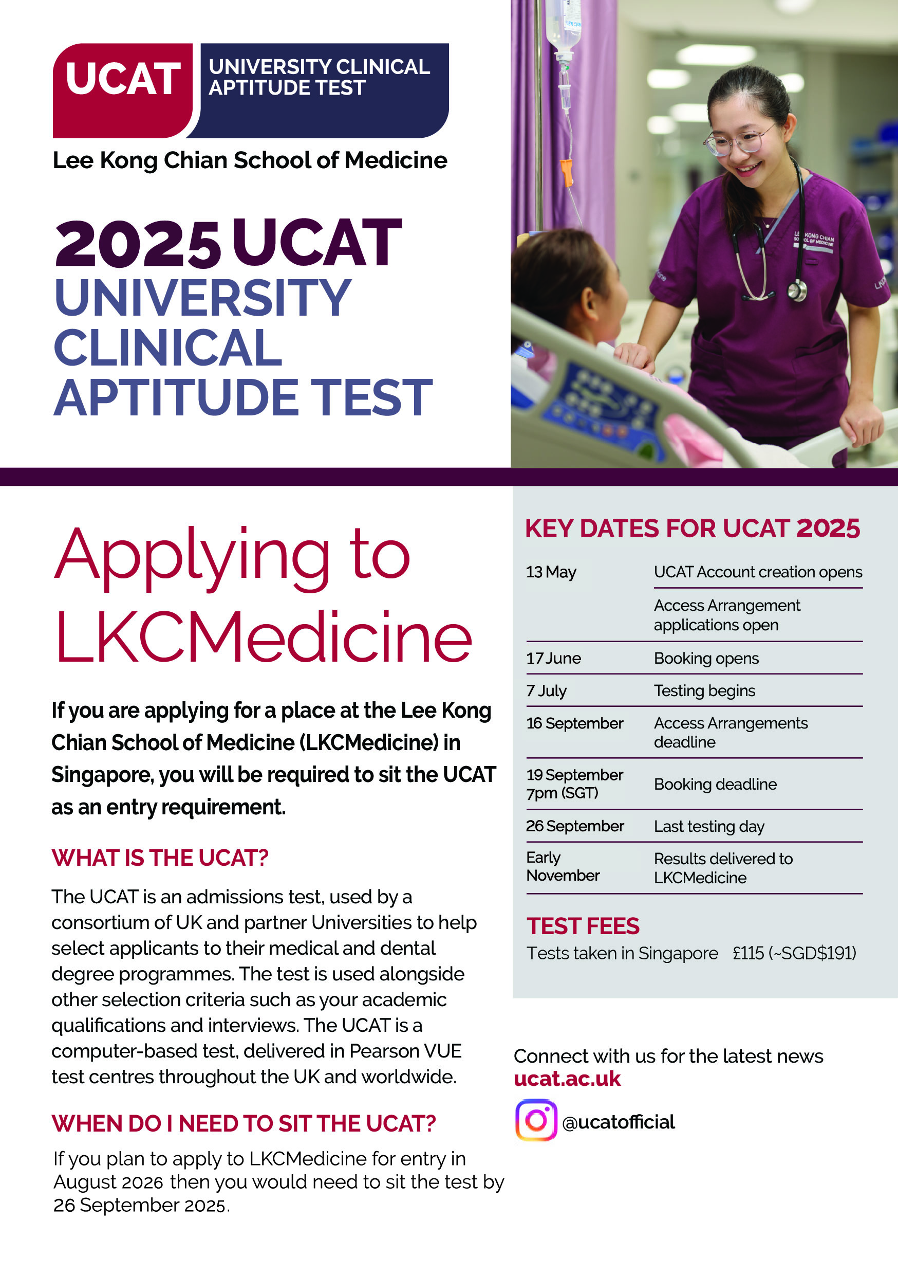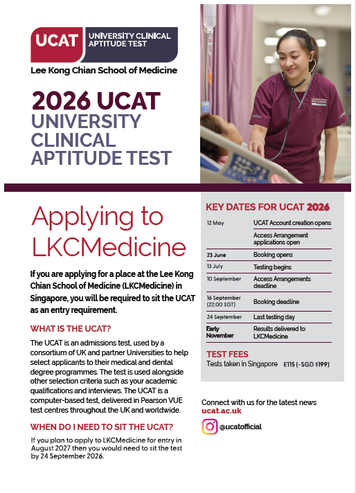 Brochures 10 reasons why you should join the NTU MBBS Programme MBBS Programme University Clinical Aptitude Test (UCAT) Student Life @ LKCMedicine Scholarships & Financial Aid LKCMedicine Corporate Brochure Medical Education Research and Scholarship Unit (MERSU) Covid-19: Battling an evolving epidemic Graduate Diploma in Sports Medicine