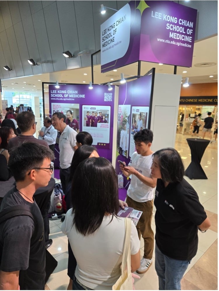 Yesterday, I attended the Open House of NTU. This is an annual event when the university is open to the public to introduce various colleges, variety of courses and exciting campus life. The booth of Lee Kong Chian School of Medicine is one of the most popular spots for thousands of students and parents, coming to enquire about the admissions criteria, selection process and medical profession as a career.