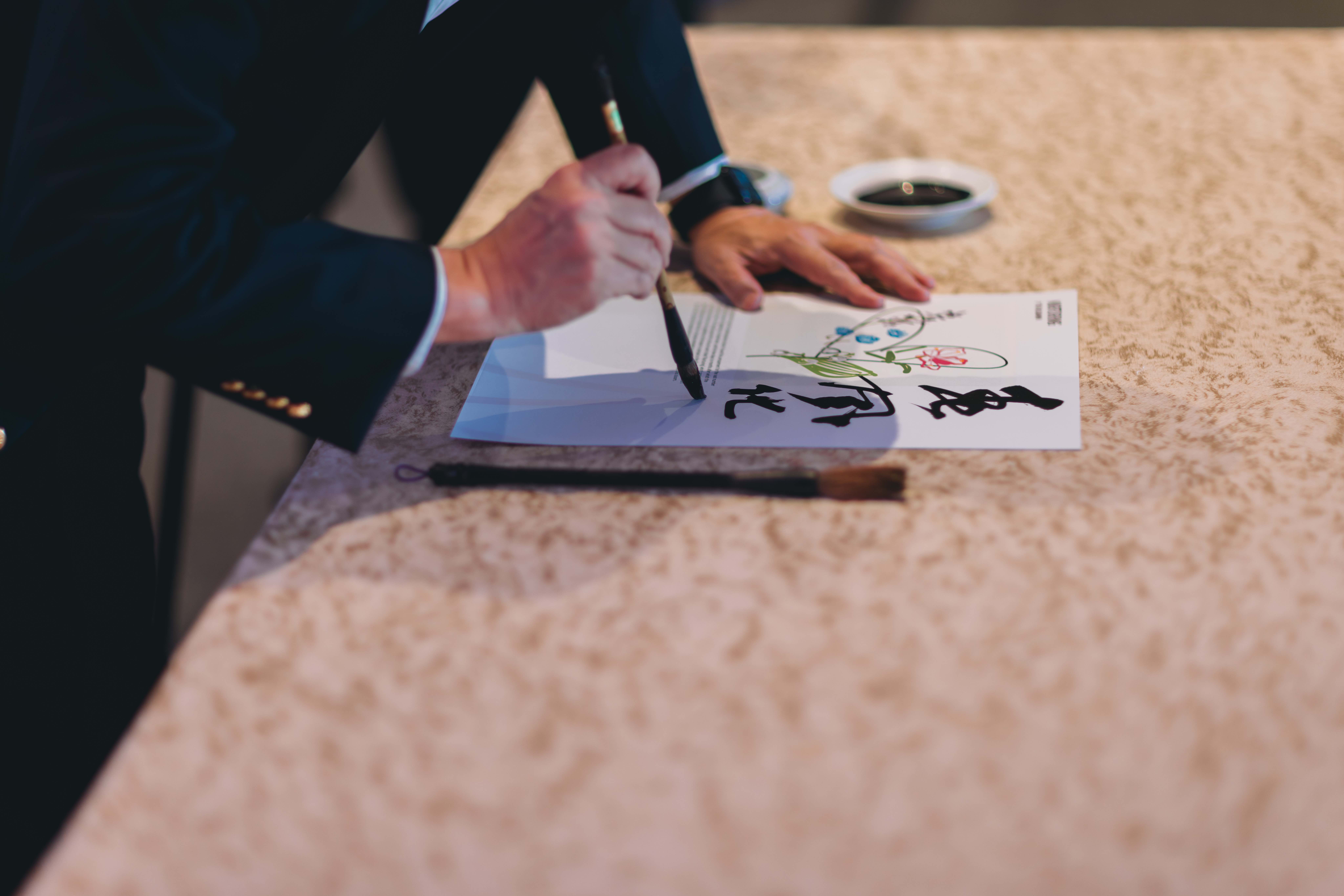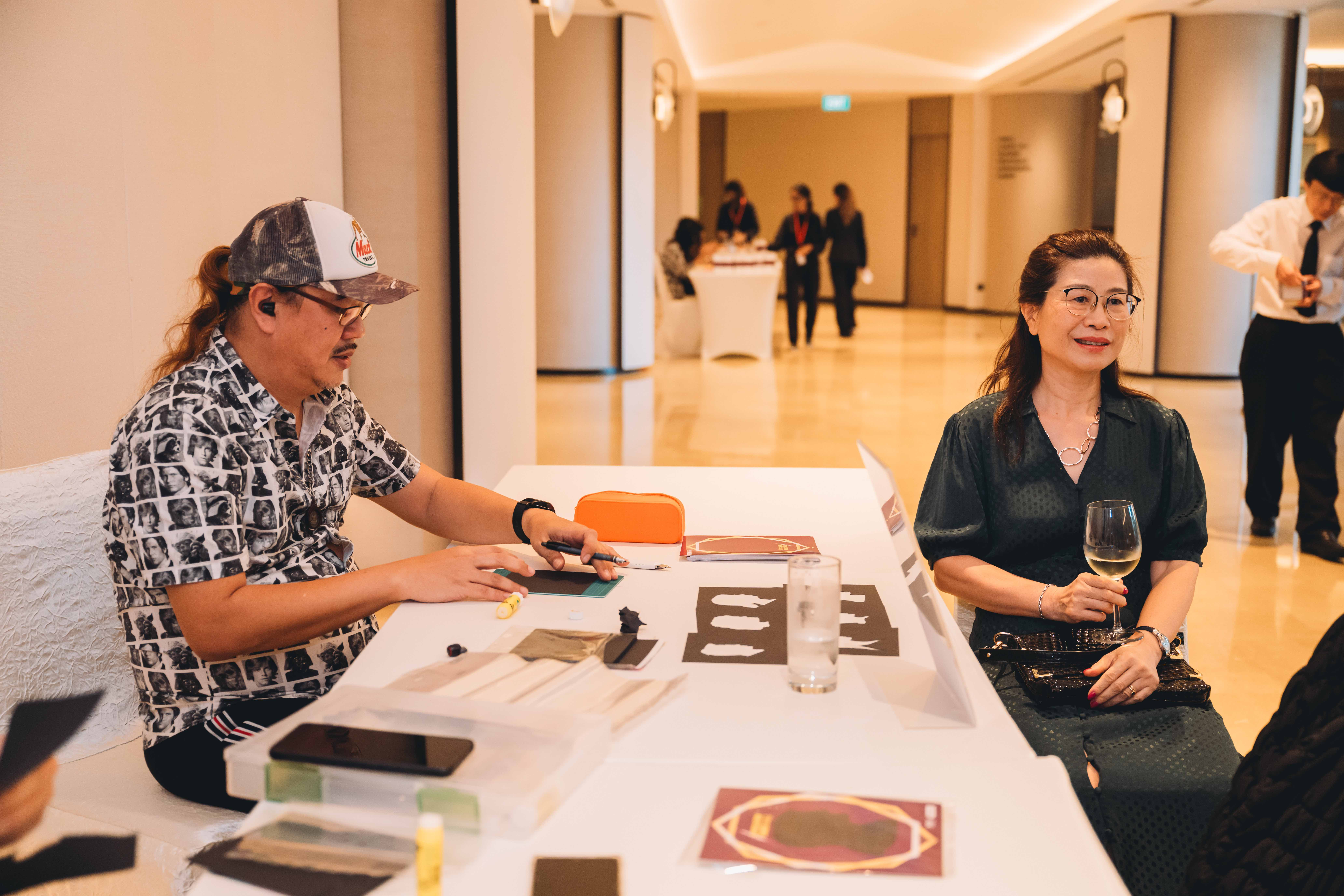 As the venue buzzed with arrivals, attendees mingled and took part in interactive fringe activities. A silhouette artist carefully cut guests’ profiles with expert precision, creating elegant paper portraits in under five minutes—each a personalised souvenir to take home. Meanwhile, skilled calligraphers sat at another booth, penning guests’ names in delicate script onto clear glass tiles, transforming each into a unique memento.