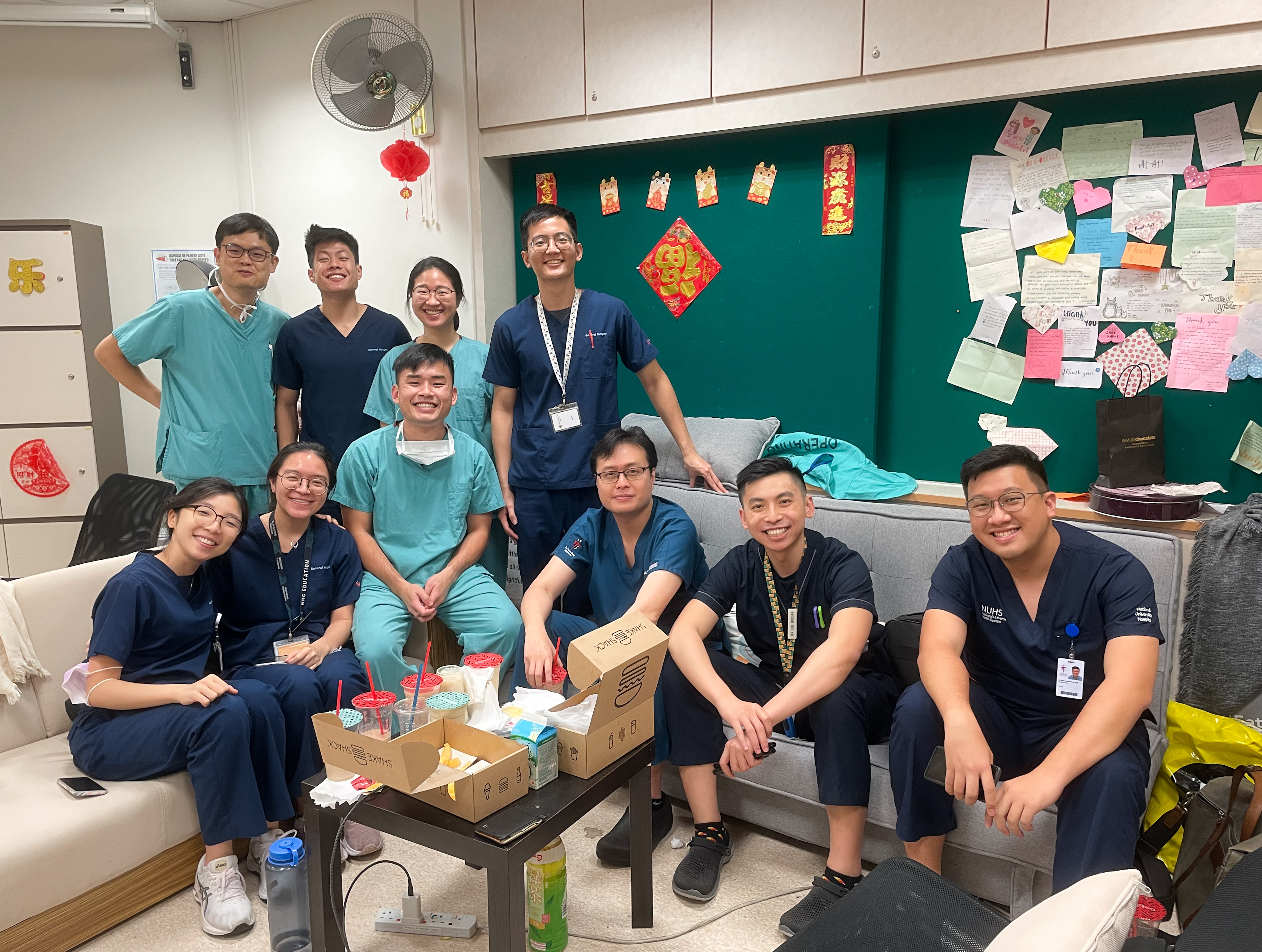 I have been very fortunate to meet many nurturing mentors and like-minded peers during my time working in NHG and studying in LKCMedicine. Having these mentors to share their knowledge and dedicate time to my growth really helped me to identify my shortcomings in a safe environment and work on improving myself while continuing to grow not only as a surgeon but a person as well. I am also thankful for my batchmates and seniors in residency who have been a constant source of support as we go through our different postings together.