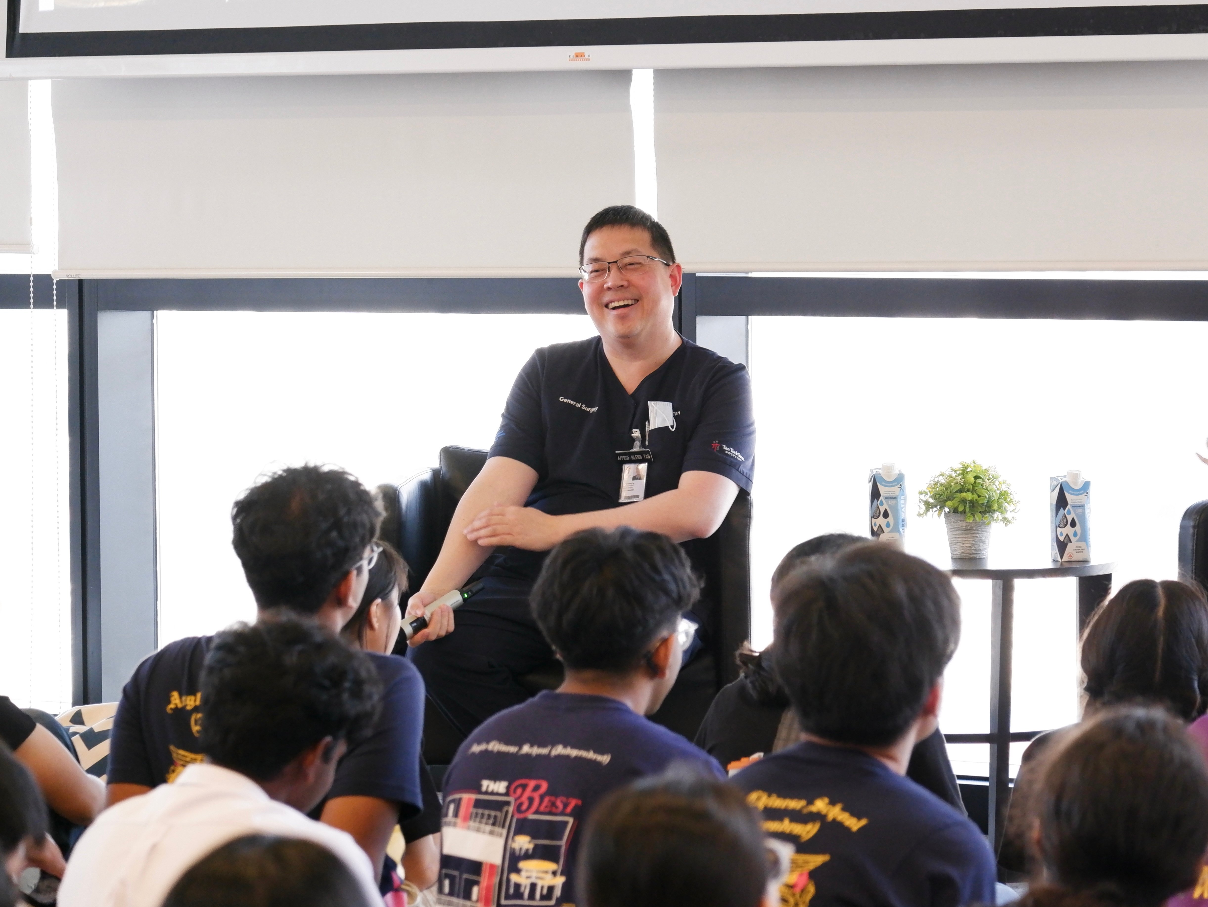 Before the day ended, campers were hosted to another Ask Me Anything session, this time with LKCMedicine’s Class of 2018 alumni: Dr Rachel Lim and Dr Tiong Wen Shuo, hosted by Dr Daniel Quek, LKCMedicine Assistant Dean, MBBS Lead. Dr Lim and Dr Tiong not only shared about their journey through LKCMedicine’s curriculum but also touched on many aspects of the vibrant student life and community. As they took questions from the floor, Dr Quek, Dr Lim and Dr Tiong were able to provide campers with useful insights from multiple perspectives – as educators, alumni, and most importantly, as medical professionals.