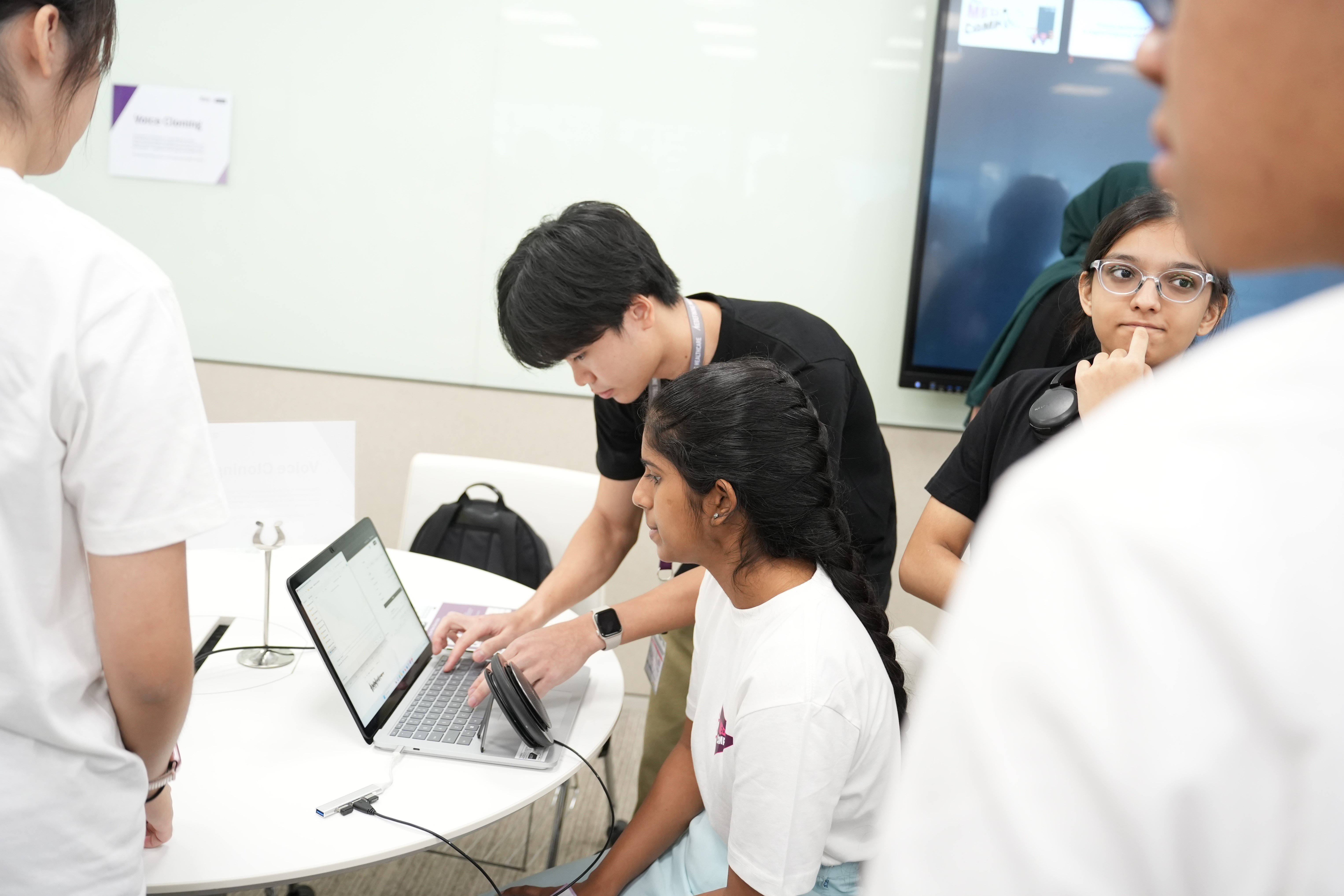 Following a talk led by Assistant Professor Bernett Lee, Director of the Centre for Biomedical Informatics, campers had the chance to practise clinical communication with an AI-powered clinical chatbot, prescribe medication using a digital ePrescription tool, and challenge their knowledge and reflexes through VR activities conducted by the Digital Learning team. They also experimented with voice cloning and designed their own digital twin!