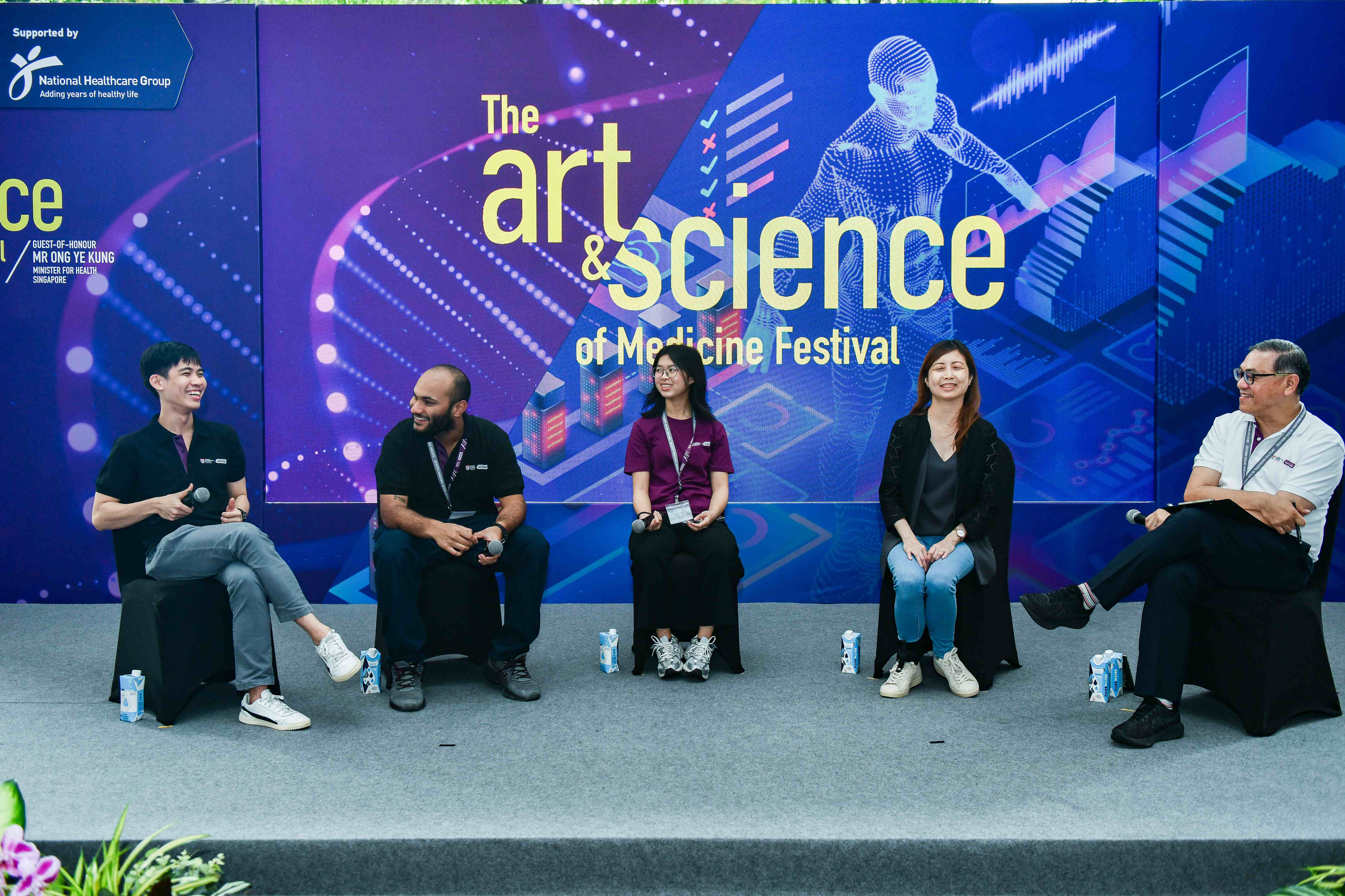 The second Art and Science of Medicine Festival added to Kampung Admiralty’s bustling energy and was a resounding success. It also displayed the unity of the LKCMedicine community, with many faculty, researchers, staff, students, and alumni coming together to answer queries on the MBBS programme, student admissions and research, and express their creativity as performers and emcees.