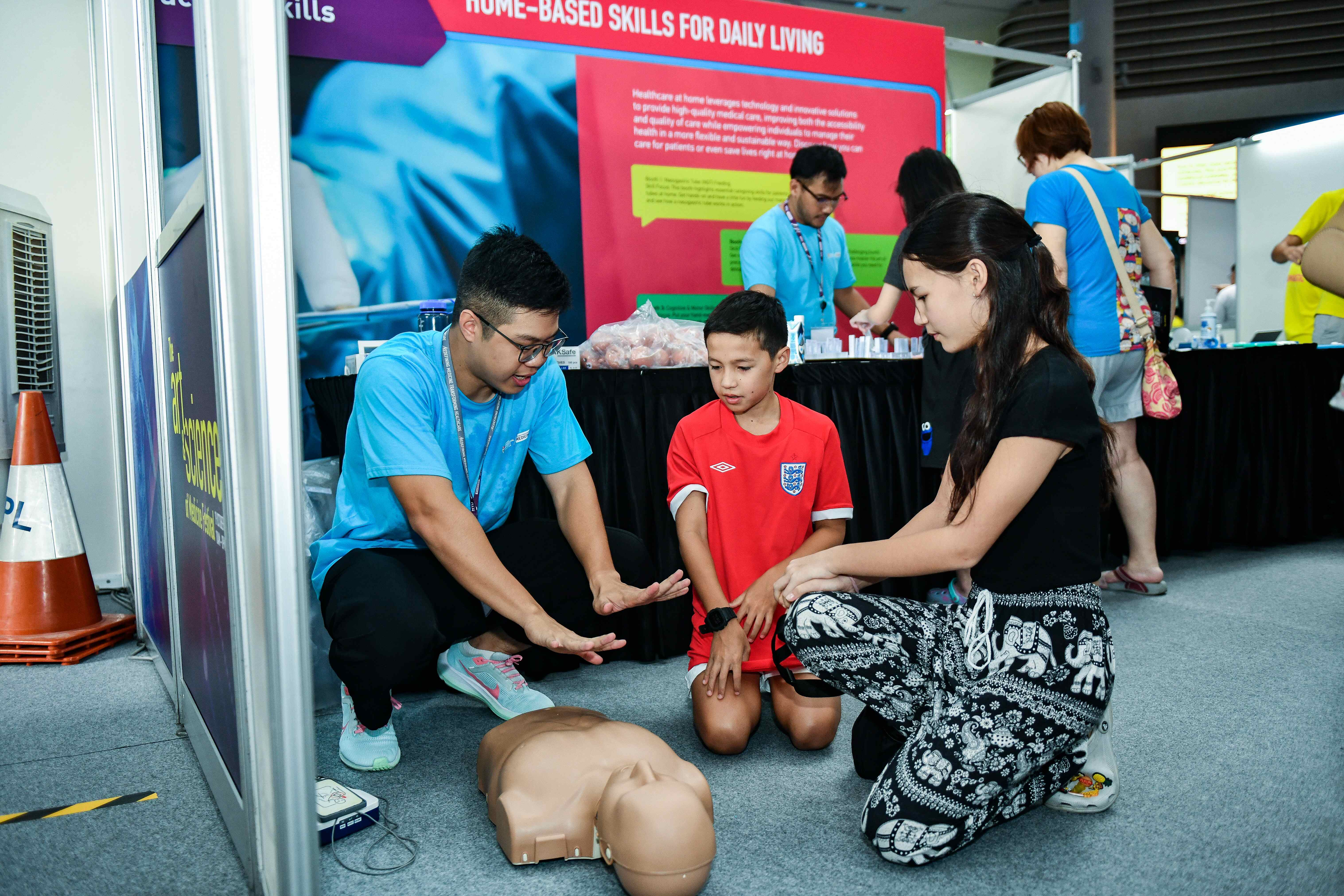 Visitors also embarked on an experiential journey to learn about the School’s innovative pedagogy and hear directly from LKCMedicine faculty, students and alumni. At the different stops in the Education Maze, attendees had a taste of what it feels like to live with age-related impairments through trying on an ageing simulation suit; experienced how LKCMedicine utilises Digital Learning such as VR and AI tools in the teaching of our medical students; unpacked the human body to learn about organs; and played games to learn how to apply practical and life-saving skills at home.