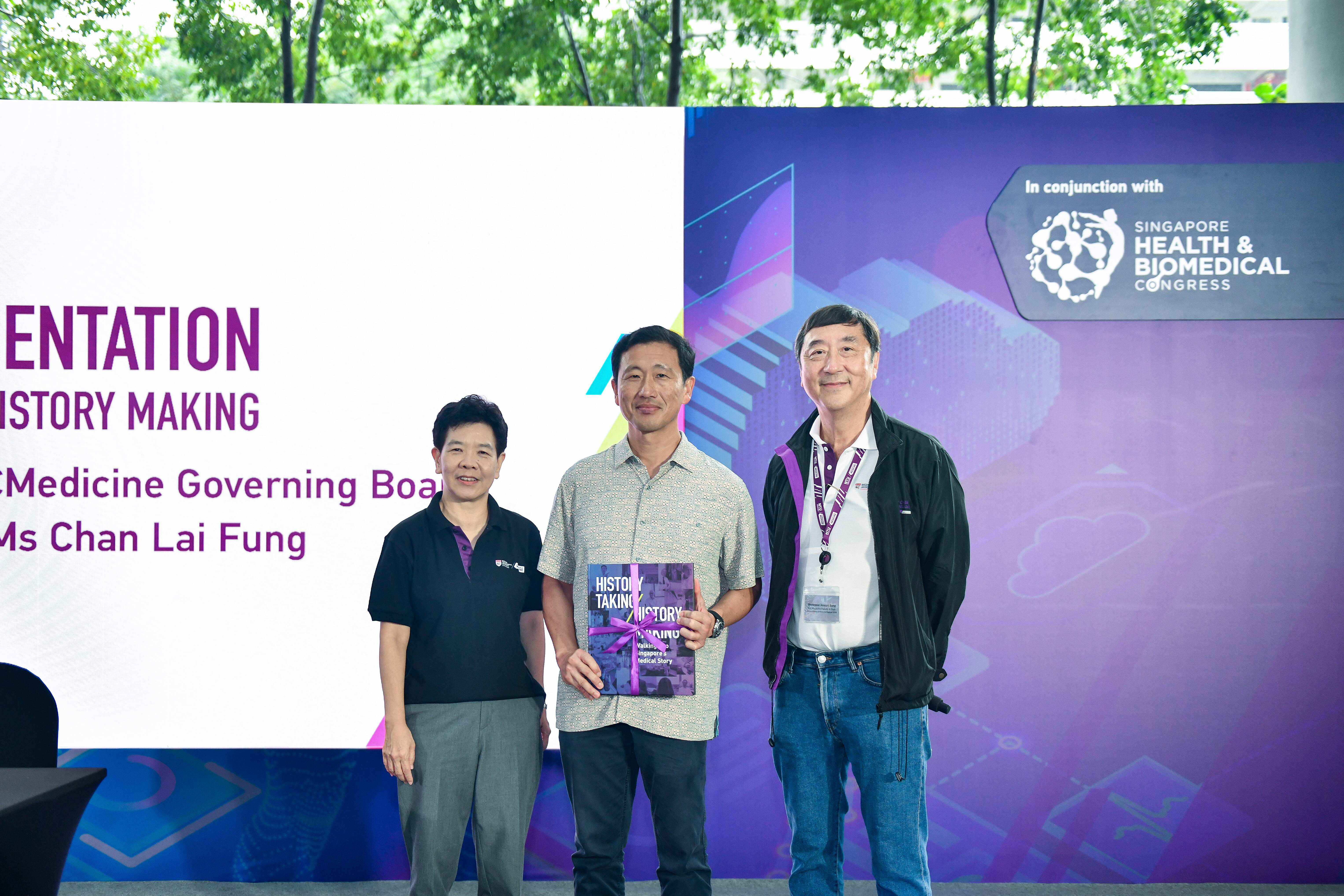 Right after, Mr Ong was presented with an LKCMedicine student-produced book titled History Taking, History Making: Walking into Singapore’s Medical Story by LKCMedicine Chair-Designate Ms Chan Lai Fung.