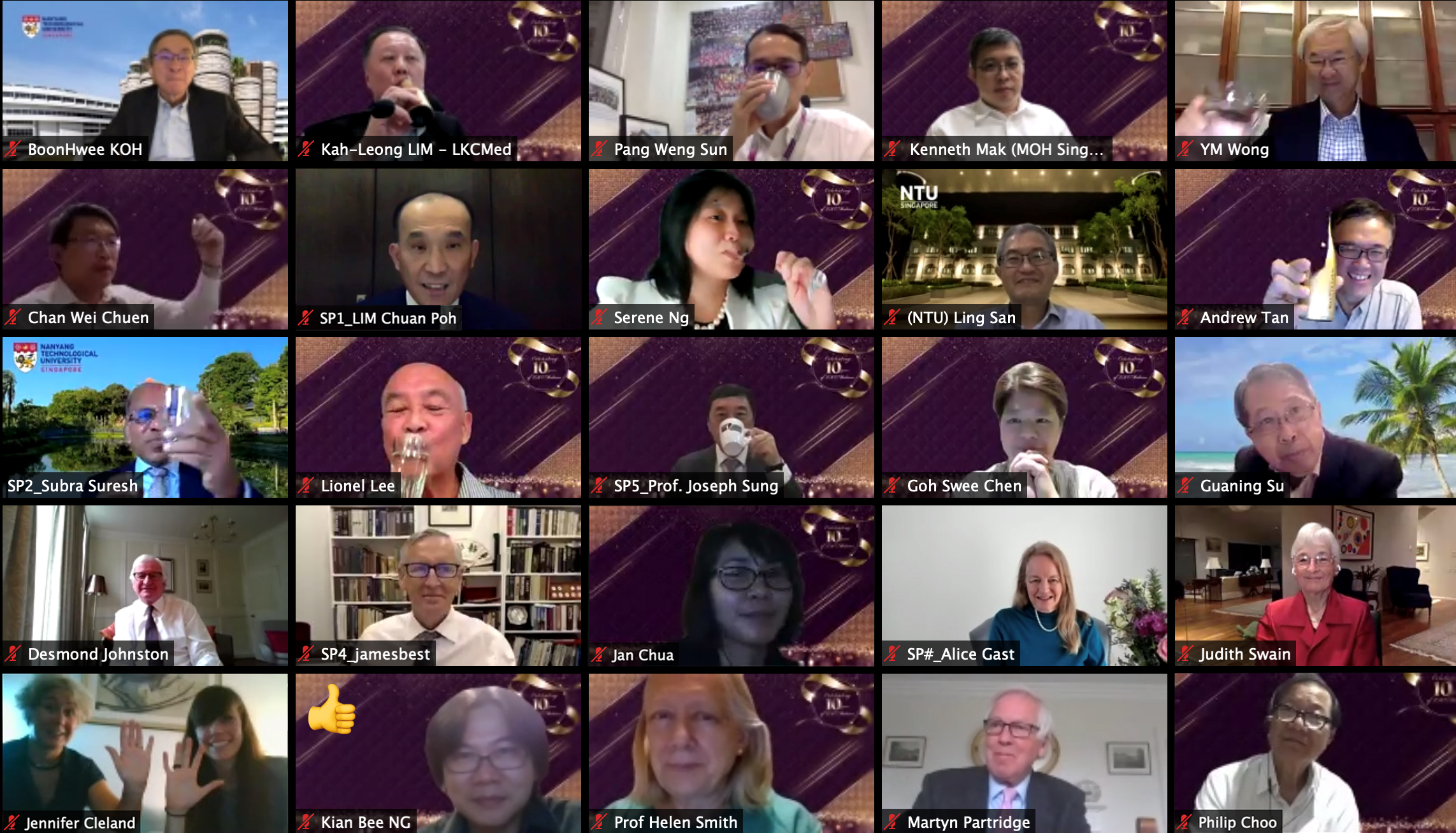 Close to 300 guests, including NTU, Imperial, and LKCMedicine leadership – past and present – faculty, staff, students, alumni, and key partners gathered online, as bento dinners were delivered to attendees based in Singapore before the start of the occasion.
