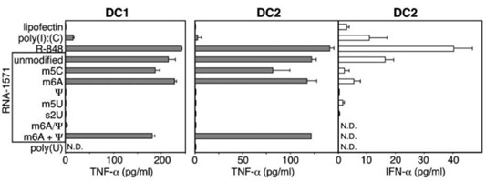 The original data showing nucleoside modifications suppress the potential of RNA to activate immune cells[3] .
