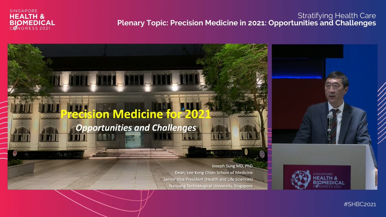 On 29 October, LKCMedicine Dean Professor Joseph Sung spoke at the plenary session titled “Precision Medicine in 2021: Opportunities and Challenges”. He touched on the three levels that technology, including artificial intelligence (AI), big data and precision medicine, will impact healthcare: clinician, health system and patient.