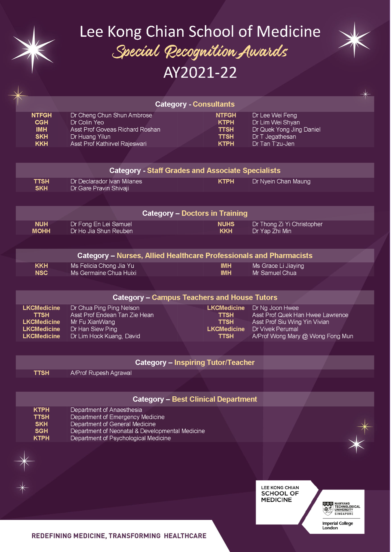 LKCMEDICINE SPECIAL RECOGNITION AWARDS AY2021-22
