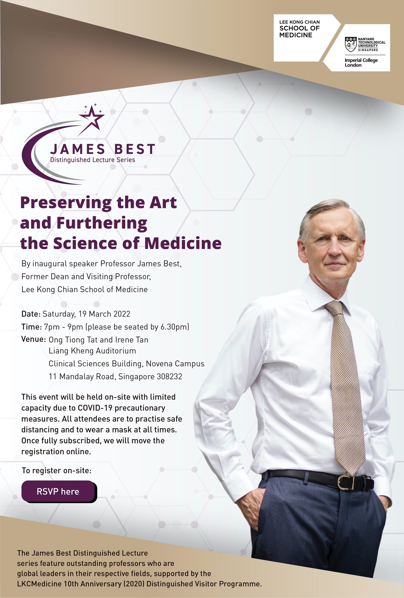 The School is pleased to launch the inaugural James Best Distinguished Lecture series on Saturday, 19 March 2022, supported by the LKCMedicine 10th Anniversary (2020) Distinguished Visitor programme.