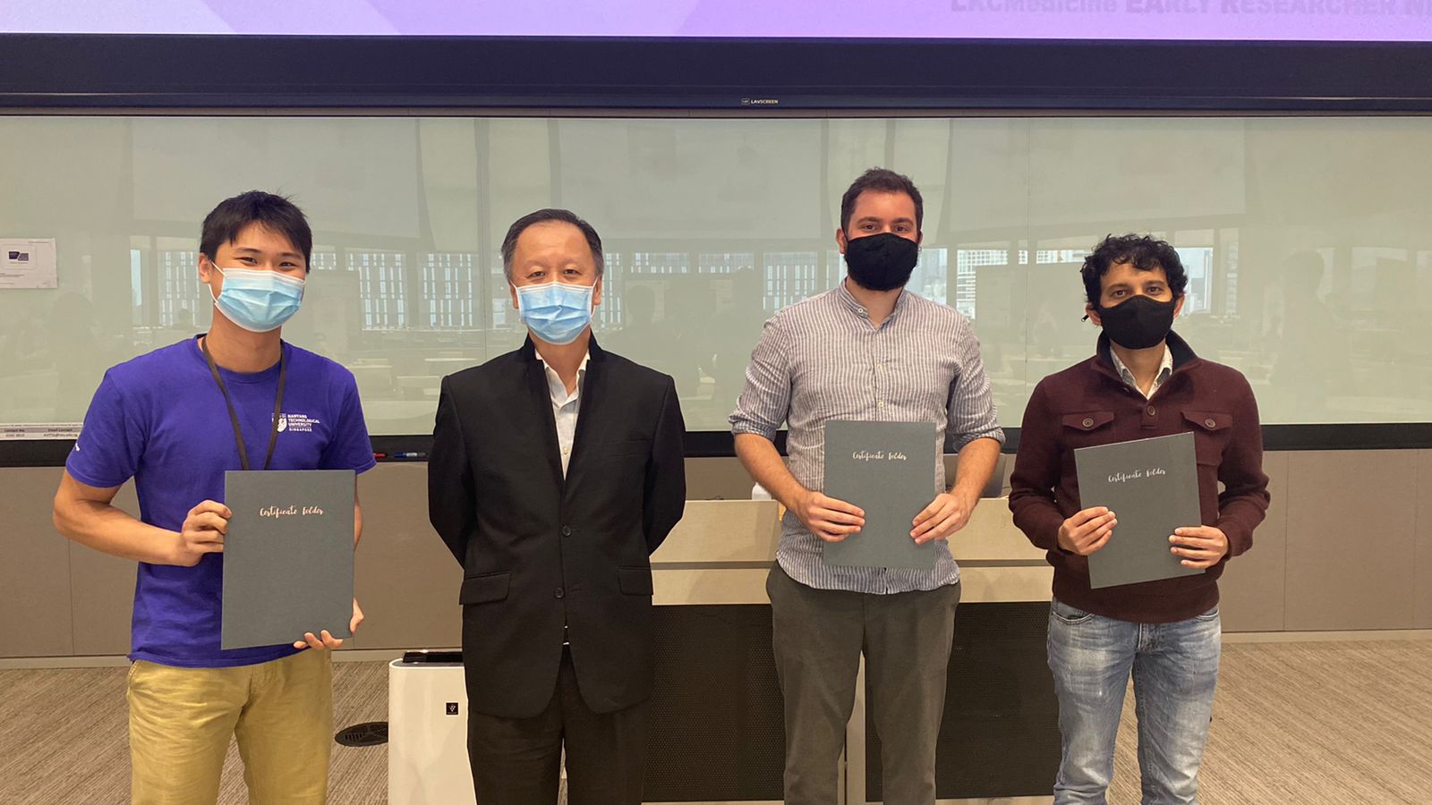 - LEARN Community Service Award – Dr Alvin Chew Bing Liang, LKCMedicine Research Fellow (Luo Dahai lab); Dr Harsha Mahabaleshwar, LKCMedicine Research Fellow (Tom Carney lab); and Dr Giuseppe D’ Agostino, LKCMedicine Dean’s Postdoctoral Fellow (Sarah Langley lab)