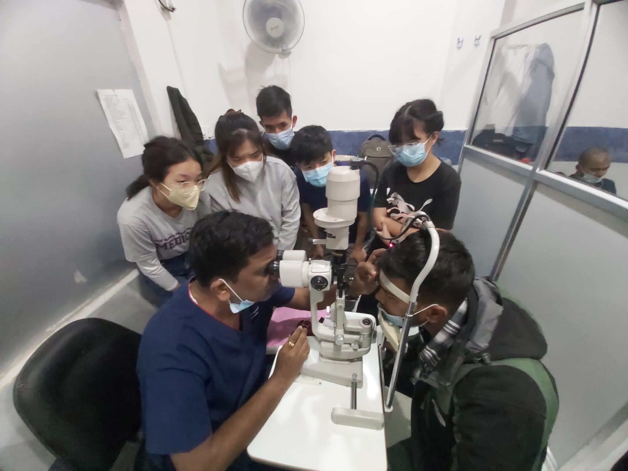 Dr Agrawal (left) demonstrating clinical examination skills to LKCMedicine students in Nepal during the Overseas Community Involvement Programme “Project Aasha” (December 2022)