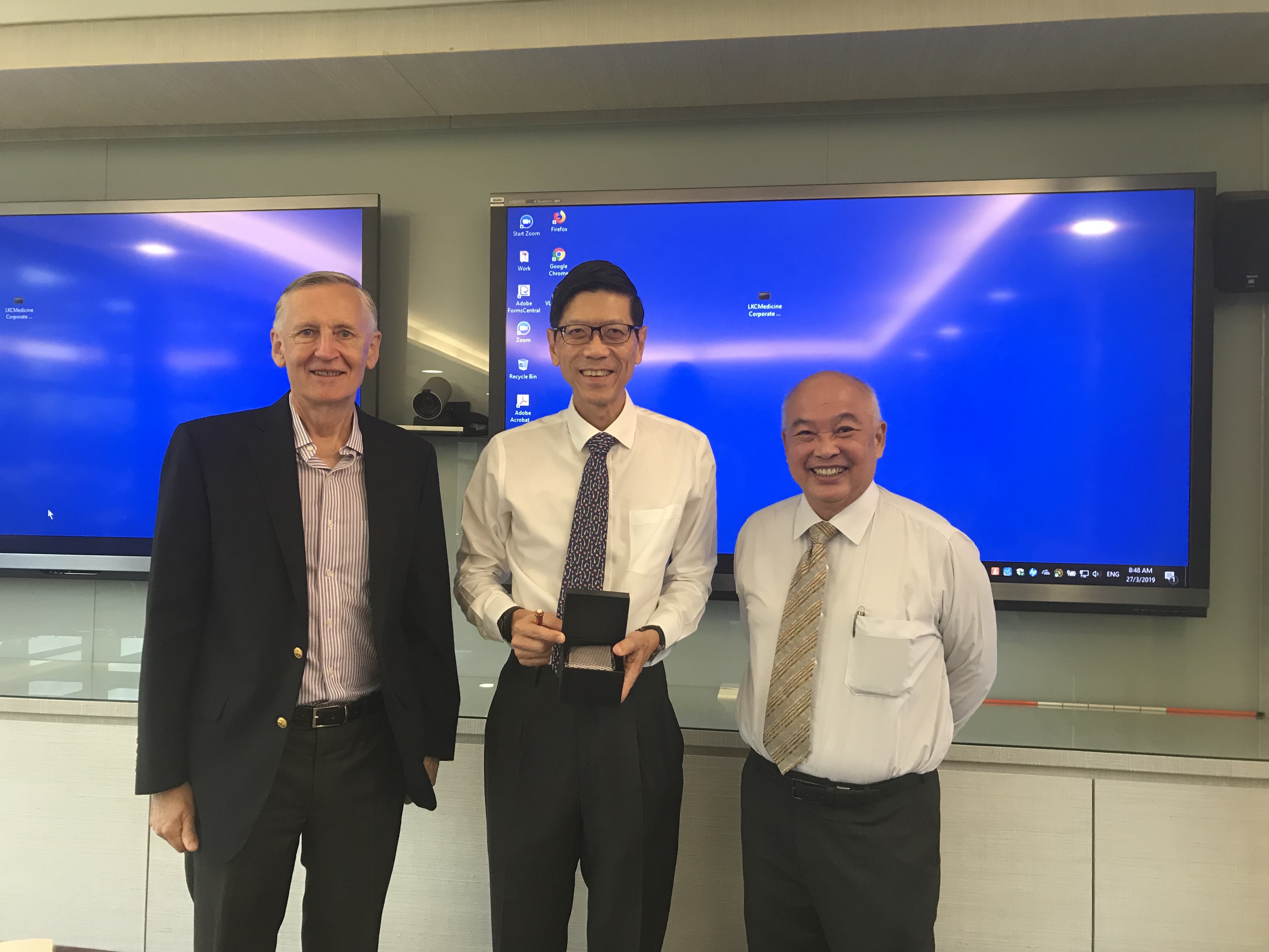 Professor Tan Chorh Chuan, Chief Health Scientist with the Singapore's Ministry of Health (MOH) made his first visit to Lee Kong Chian School of Medicine (LKCMedicine)'s Novena campus on March 27 where he was hosted by Dean of LKCMedicine Professor James Best and former LKMedicine Executive Vice-Dean of Strategic Relations and International Affairs Professor Lionel Lee.
