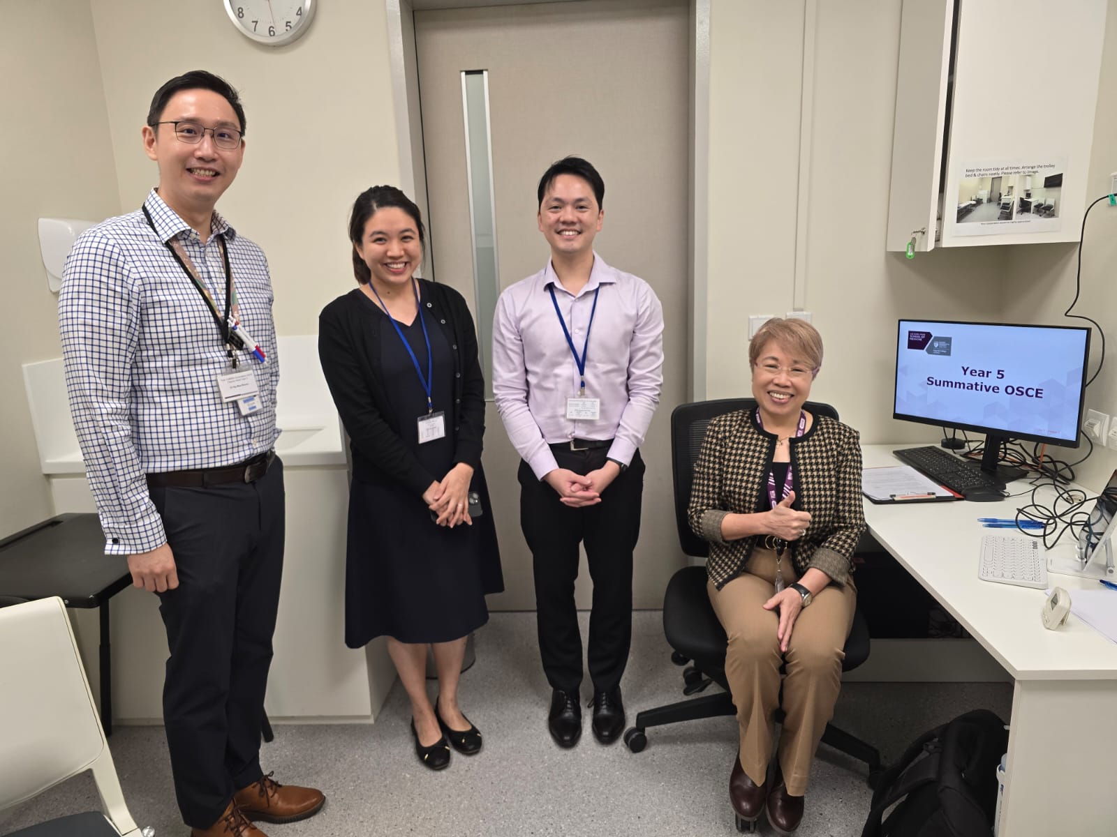 “There was a detailed examiners training workshop conducted by the School to ensure that all examiners were on the same page with regards to the conduct of the exam, individual stations and to enforce standardisation as well. This helped me immensely to understand the expectations of examiners in terms of conducting the stations and standardised marking. Prior to the exam, I was also involved in calibrating our expectations of the students with fellow examiners. This was to minimise overly hawkish or dovish marking,” shared Dr Ho.