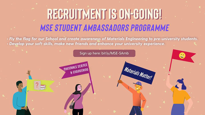 - Represent MSE in selected events for prospective/pre-university students such as NTU Open House, JC or polytechnic career/education fairs, MSE talks