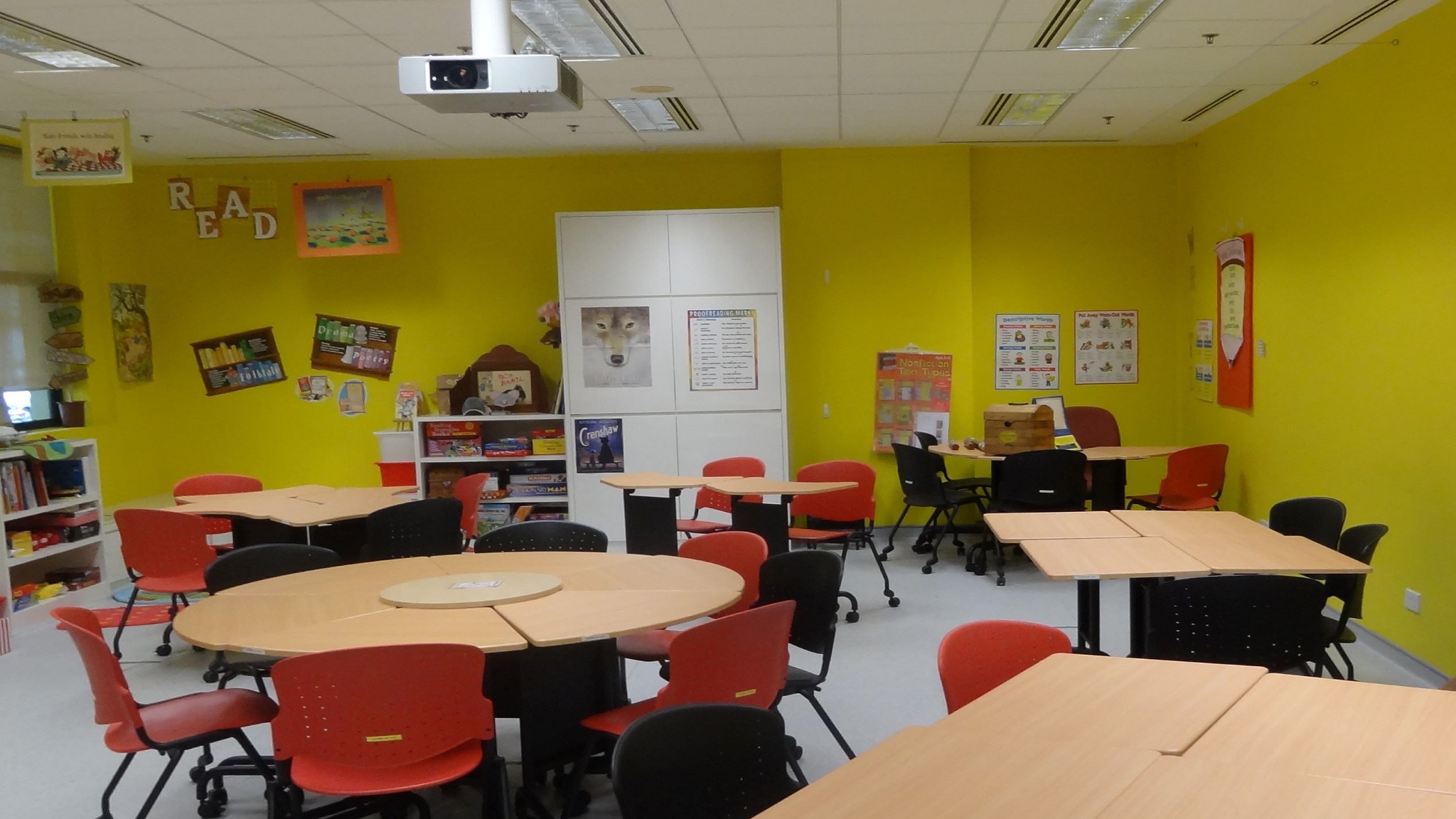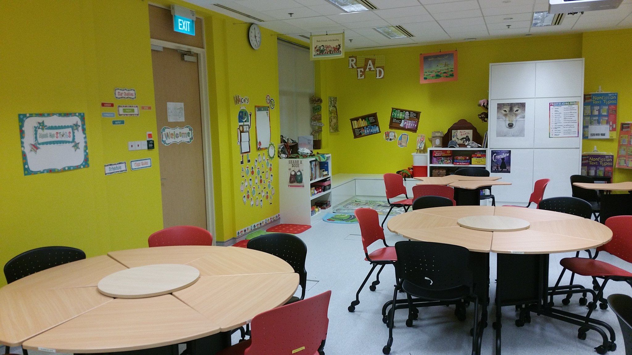 The room features the different literacy areas of English, listening, speaking, reading and writing. Oral communication is critical in the early years, and this can be seen in the way the room has been designed to offer opportunities for children to listen and speak in a variety of literacy activities. Immersion in a print rich environment is also critical for early literacy where children are at the foundation stage of language acquisition and are learning to read before they subsequently progress to reading to learn. The PEL room has been designed with that in mind. A large collection of books (big books, small books, audio books), children’s writing, posters and labels are found in the room. Children learn to read from big books and read to learn from the learning centres for English, Mathematics and Science. The learning centres and literacy activity areas have been arranged to integrate seamlessly with the classroom design. Apart from functioning as a “model” classroom, the PEL classroom is also a resource room for teachers. The room displays different types of lower primary teaching and learning resources that teachers can use for their lessons.