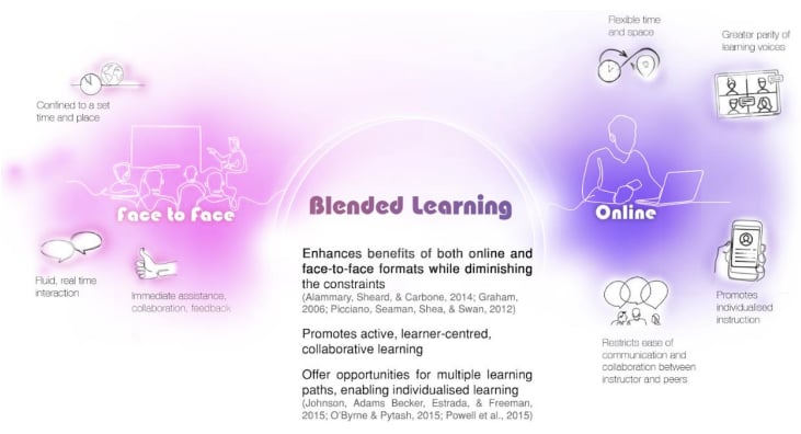 O’Byrne, I., W., & Pytash, K. E. (2015). Hybrid and blended learning: Modifying pedagogy across path, pace, time, and place. Journal of Adolescent & Adult Literacy, 59(2), 137-140.