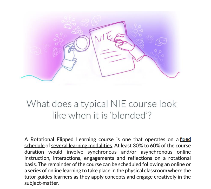 Blended Learning@NIE isn’t just about mixing online and face-to-face teaching. It’s about designing learning that’s flexible, empowering, and built for the future. With sound pedagogical practices at its core, it gives students greater control over how, when, and where they learn while helping our faculty craft more meaningful, connected learning experiences.